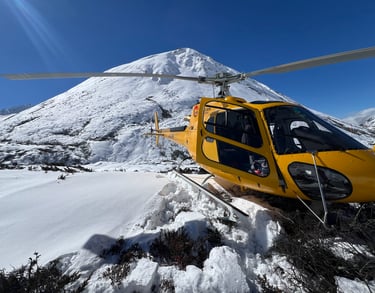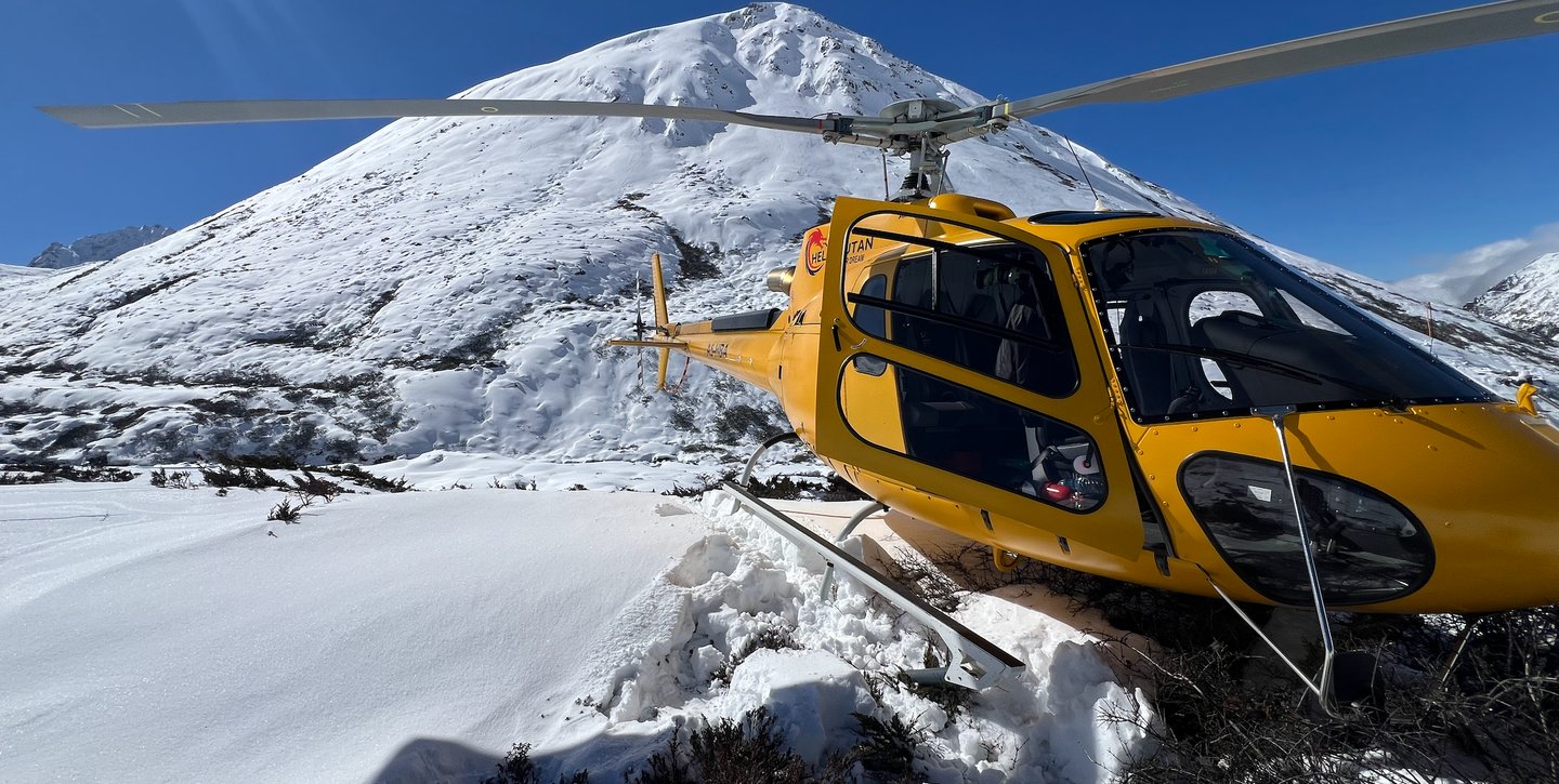 A rare landing in the high Himalayas east of Lunana, where snow-covered landscapes stretch beyond 16,000 feet. Here, Captain Edoardo Cuaz drops local collectors in search of cordyceps, one of Bhutan’s most valuable natural treasures, in regions accessible only by air.